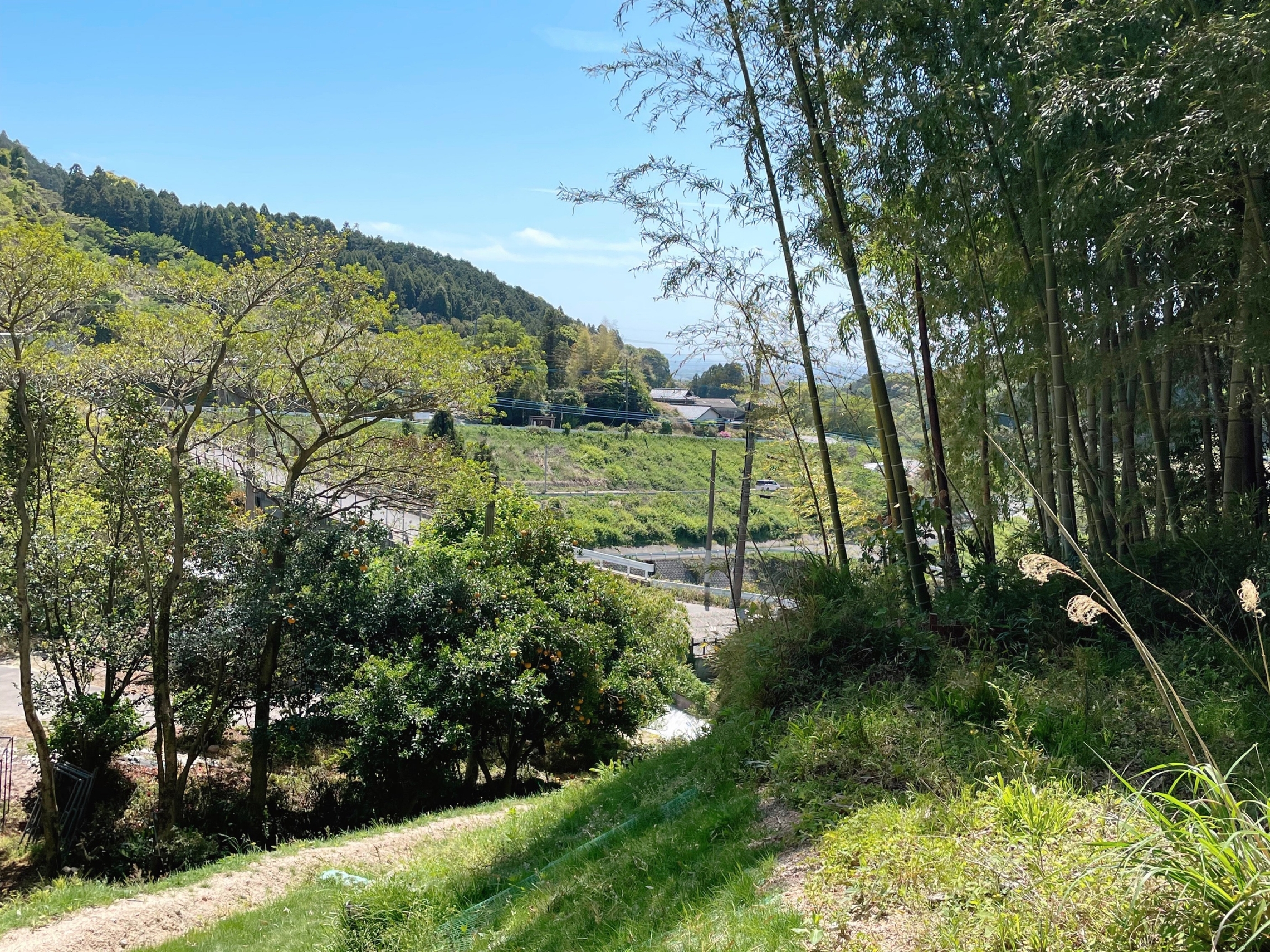 山の緑と空の青が