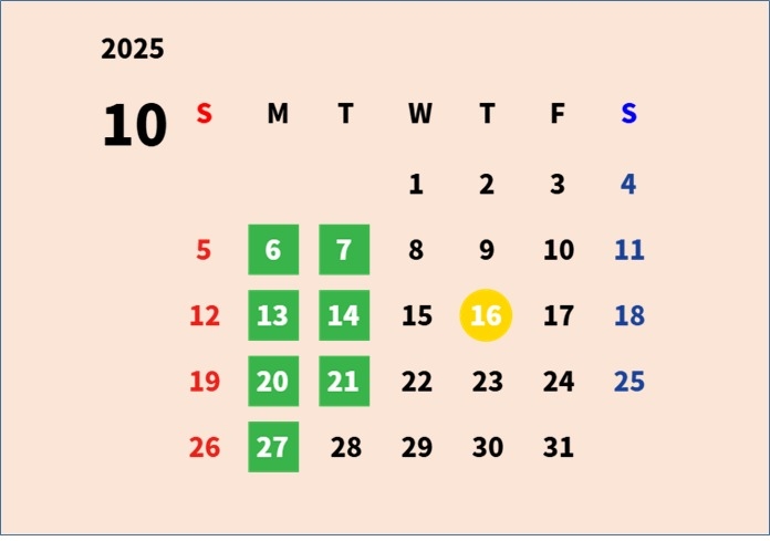 さて10月の営業日のご案内です😊