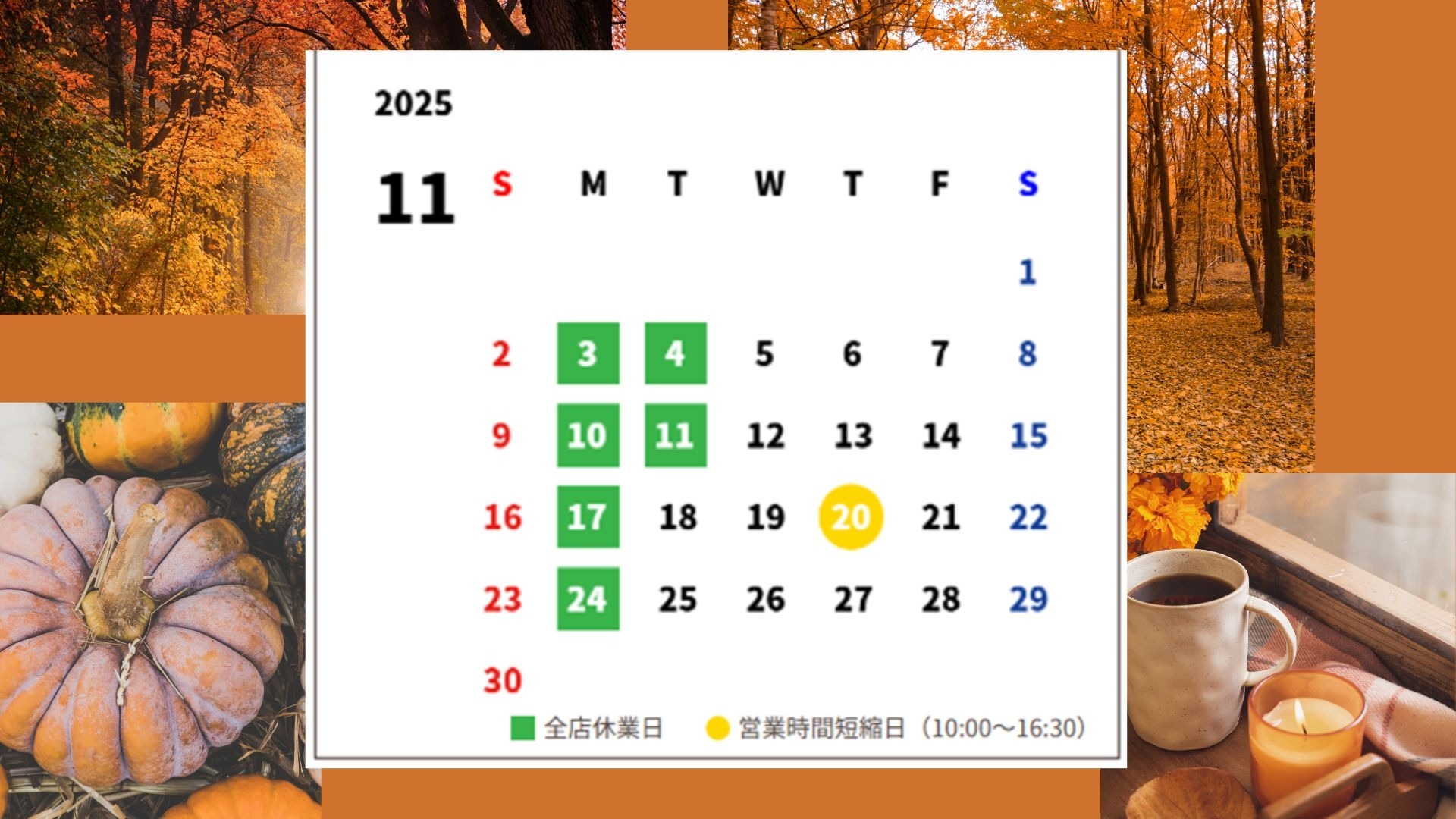 井尻店🎃11月の営業日ご案内