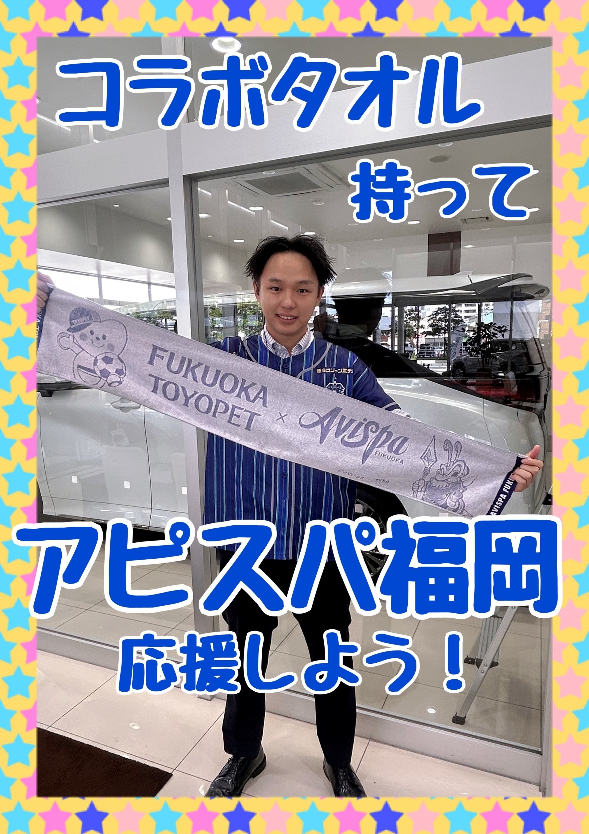 期間中、新車をお見積り、またはお乗りのおクルマを査定いただくと「アビスパ福岡コラボタオル」プレゼント!