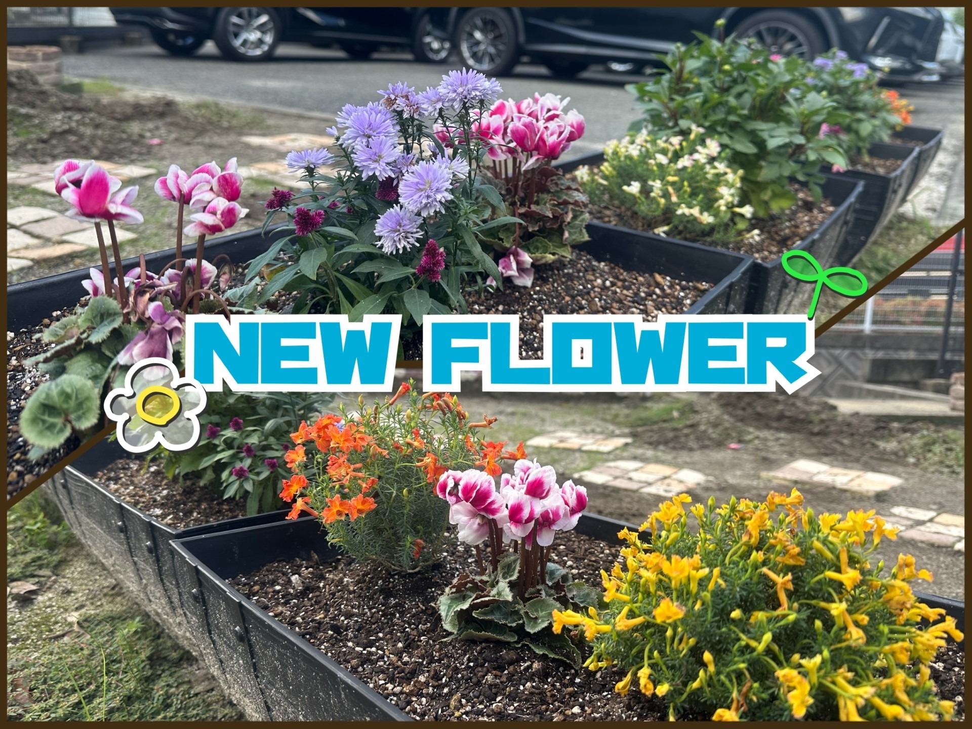 奥の花壇 植え替えました🌼 Cはしもと🚘✨