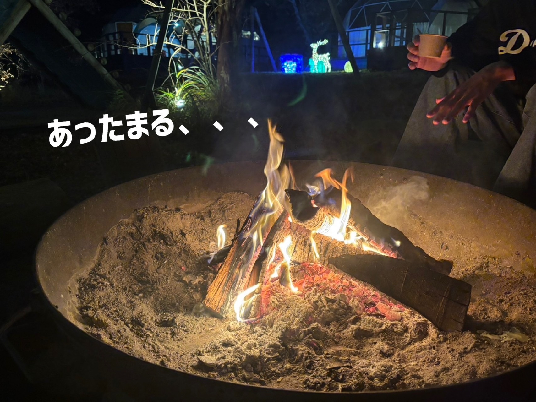外で焚き火をして