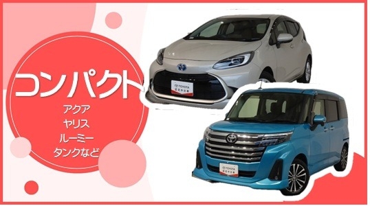 アクア、ヤリス、ルーミーなどがあります!