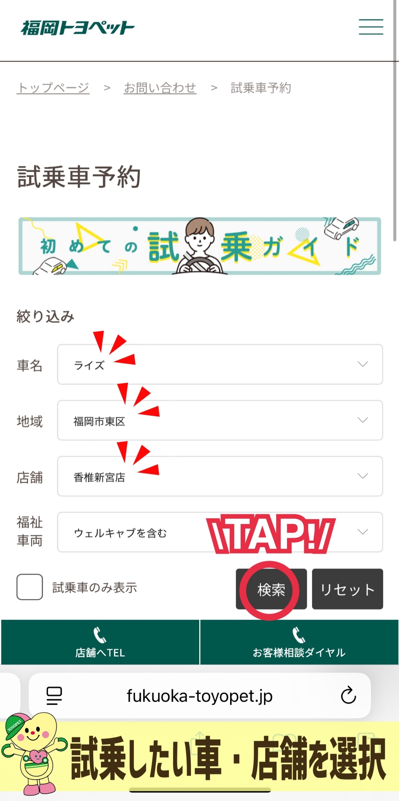 ②試乗したい車・店舗を選択
