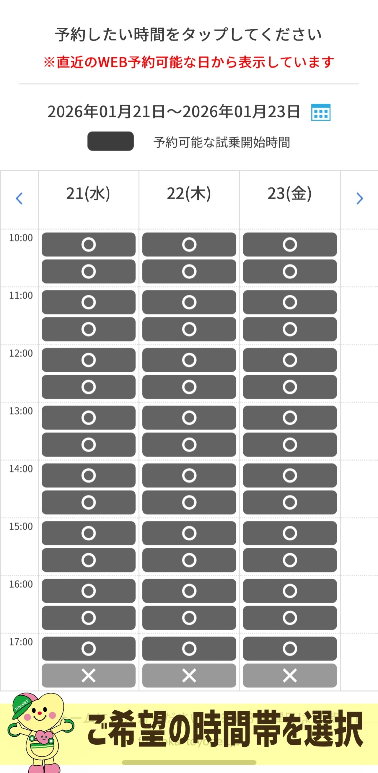 試乗車の情報や、空き状況、ご予約が