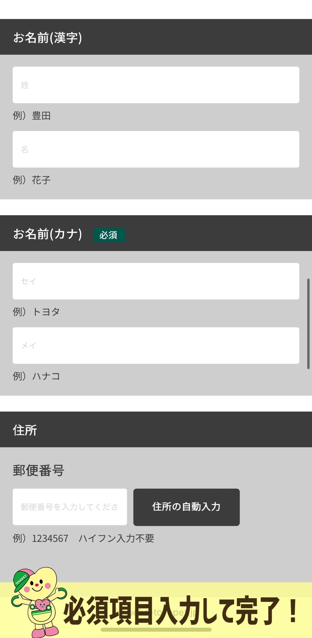 ⑤必須項目を入力して完了!!