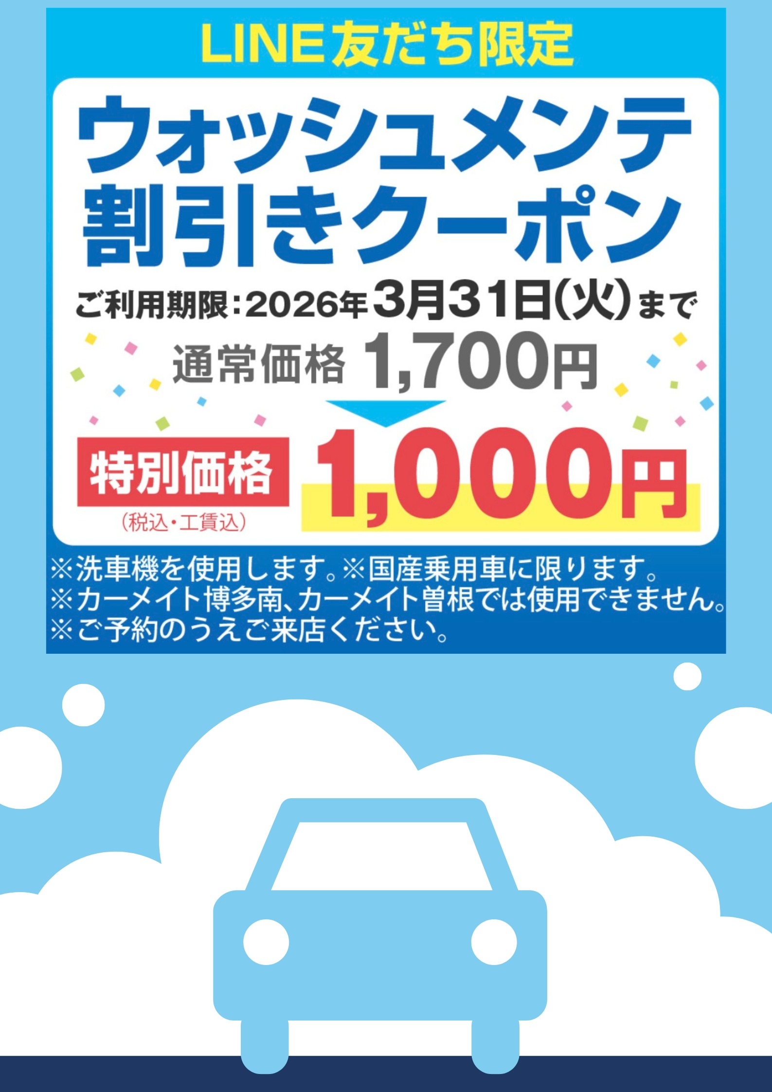 糸島店💙ウォッシュメンテお得なクーポン配信中💙