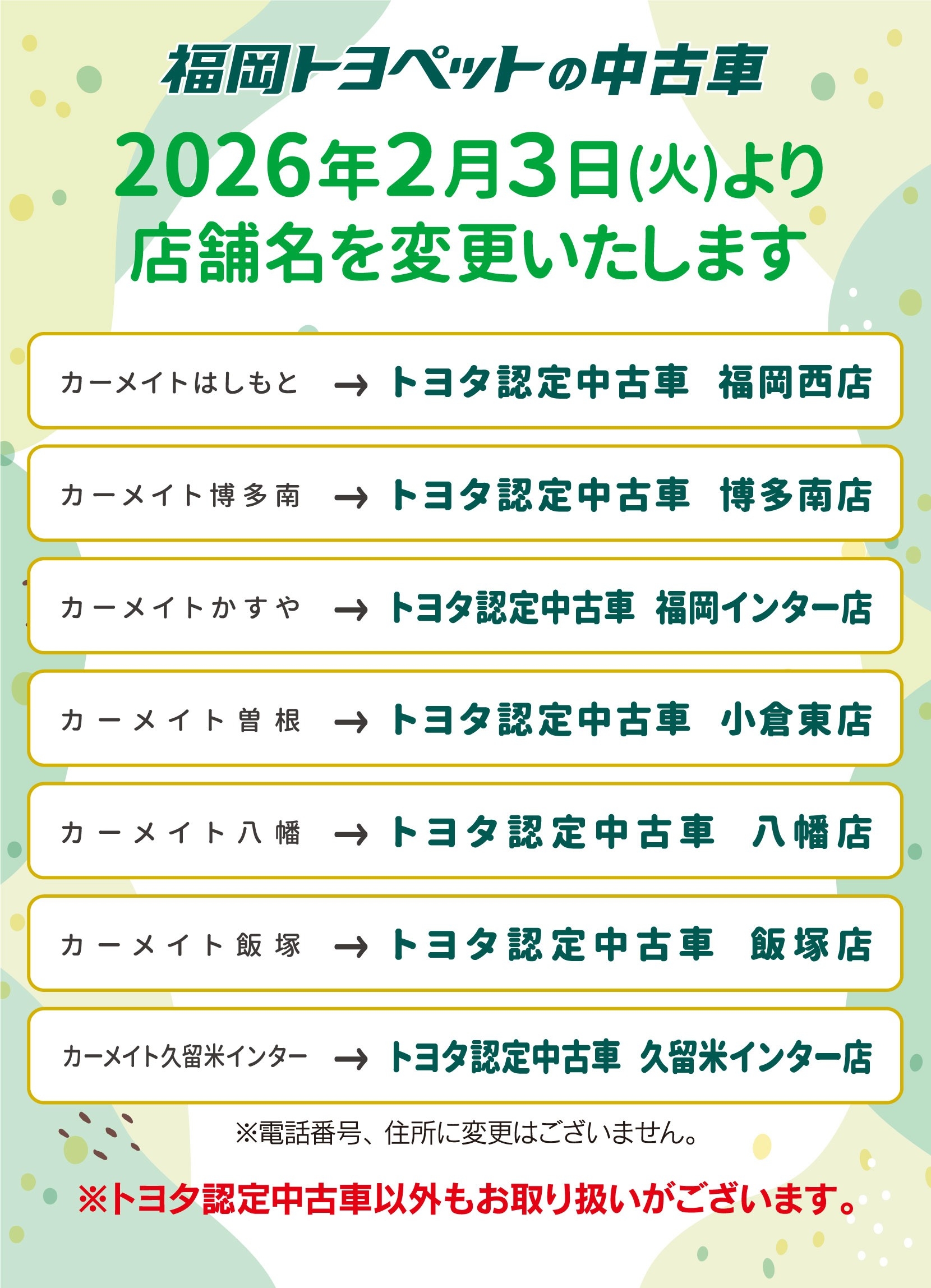 カーメイトからトヨタ認定中古車へ!リニューアルフェア🎪
