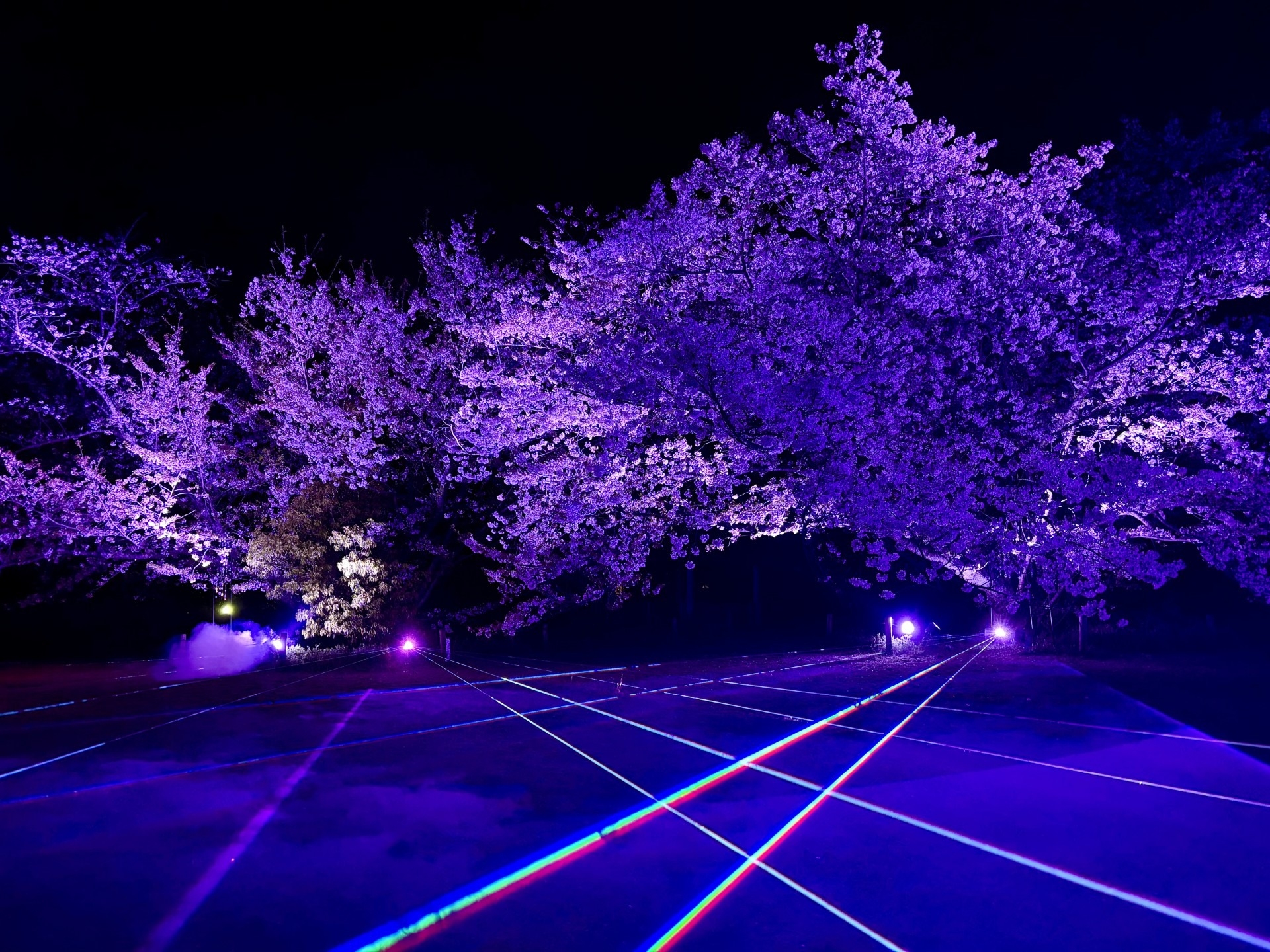 ライトアップされた桜たちが