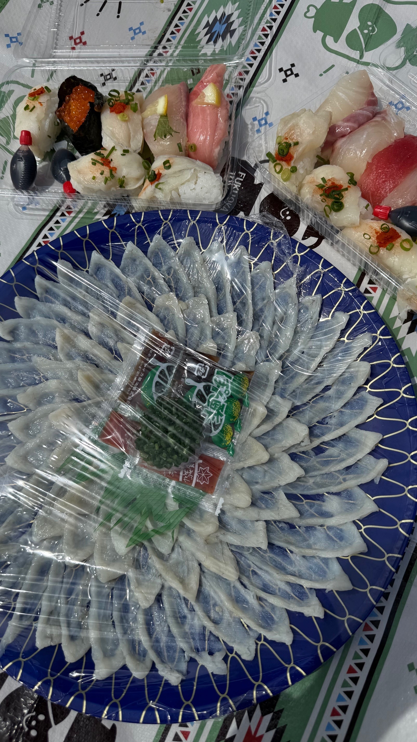 名物のふぐ刺しとお寿司を食べました