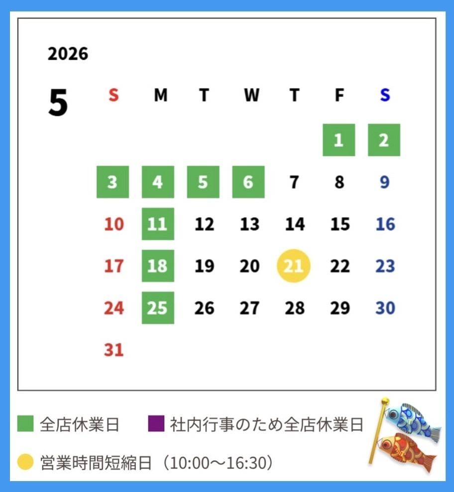 久留米店★5月営業日のご案内📅